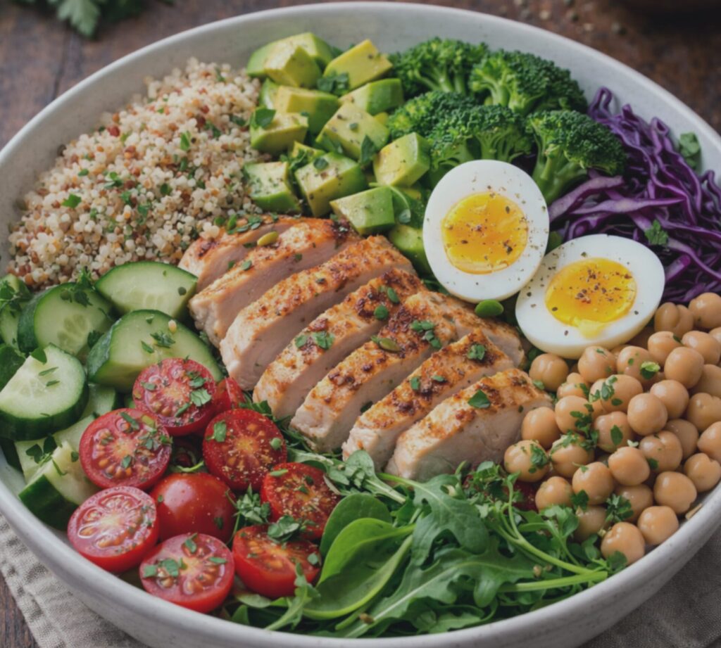 Uma refeição saudável, colorida e muito nutritiva Essa salada completa saudável é uma ótima escolha para quem busca uma refeição