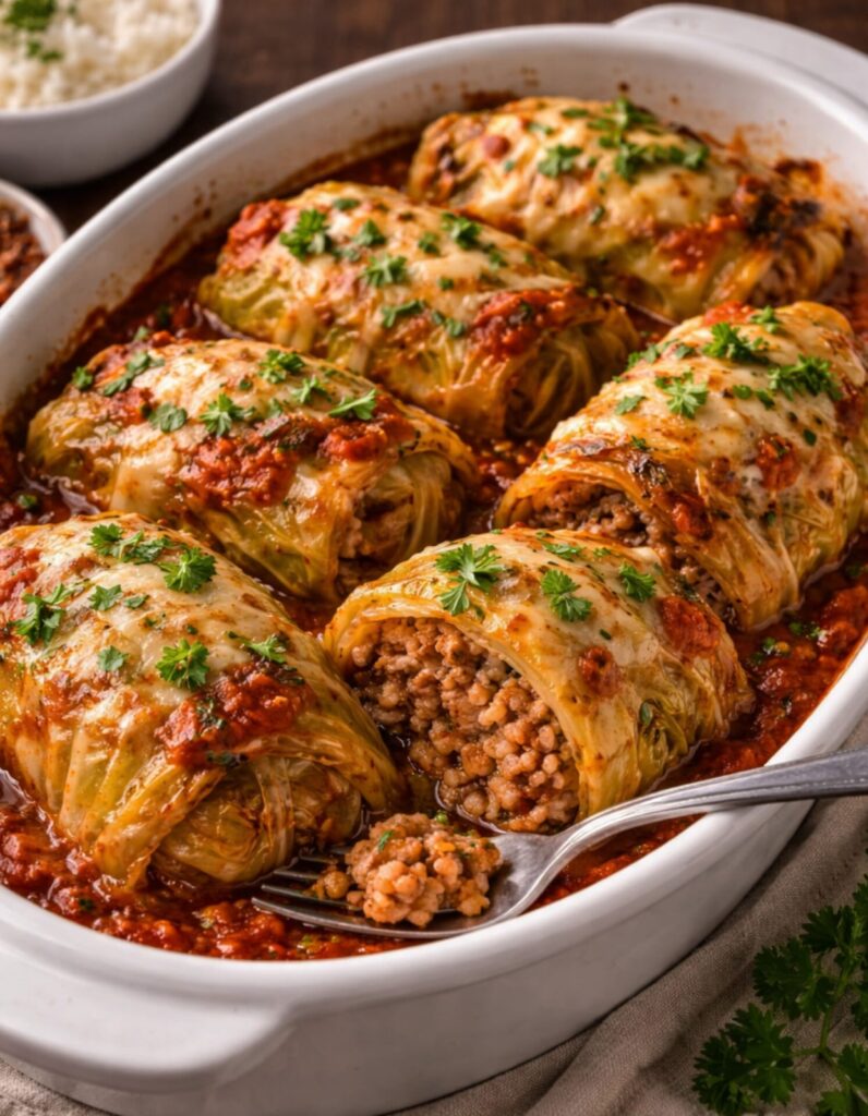 Uma receita caseira, saborosa e perfeita para o dia a dia O repolho recheado com carne moÃda é uma receita